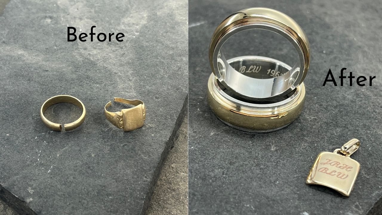 These before-and-after photos celebrate the sentimental heart of each piece, reimagined with a fresh, modern aesthetic—so their stories can continue to be worn, shared, and loved.